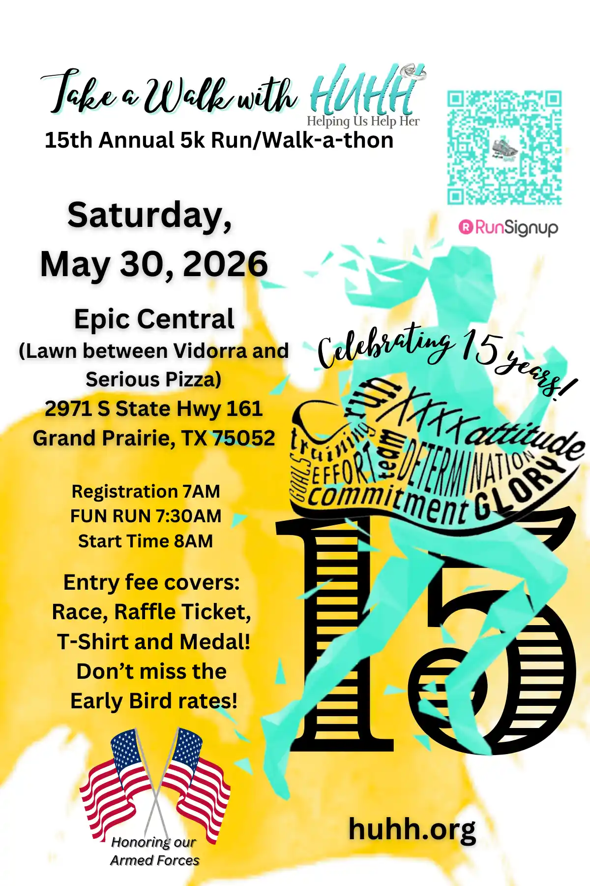 Empowerment, Unity, and Wellness – step into the stride of positive change with our upcoming event! We are thrilled to invite you to our 15th Annual 5K Walk/Run-a-Thon, hosted by Helping Us Help Her (HUHH) a dedicated mentorship program breaking down barriers and creating a supportive environment for young ladies aged 13-18, now expanding to welcome young men. Your support goes a long way in creating a brighter future for the youth in our community. Lace-up your sneakers, bring your friends, family, neighbo5Krs, classmates, and co-workers, and let’s stride together toward a healthier, happier, and more empowered tomorrow. This is a timed race.